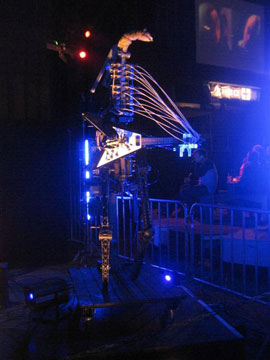 ![]() KlangcodeJan Michael Hänni, Denise Kratzer Worte als Lautpoesie, 2007 ![]() Singing GardenManuela Johanna CoviniA singing garden needs no bird. On a table the visitor perceives daily plastic utensils, pieces of electronic spare parts which are partially soldered – but also plastic flowers and a chinese electronic sound controlled bird cage. What is going to be built out of these pieces lying there is unclear because everything is evidently unfinished. But still here and there life starts rising from those parts lying on the table. LED lights are twinkling, a video is running and the sound suggests that the installation is a garden. ![]() ElectroscapeRobert Korizek, Robert Alexander (Zürich)D'effected device mutation. ![]() Strahlenroboter AituLucas Gross, FHNW HGK Institut für Design- und KunstforschungRoboter Aitu macht hochfrequente elektromagnetische Wellen von mobilen Telefonen durch audiovisuelle Effekte wahrnehmbar. ![]() Davidovitch & Konpiuta (Lausanne)Kompakt - Acid Milk Rec.. . . ![]() Track 1Simon KrebsEin Faxgerät, dass eine Zeichnung hörbar macht. Die Arbeit befasst sich mit dem Thema Kommunikation, Transport und Form von Informationen, aber auch mit der Vergänglichkeit der Technologie. Ein Faxgerät verwandelt analoge grafische Daten in akustische Signale. Arduino: Tobias Hoffmann, Martin Fröhlich; Programmierung: Stephan Athanas ![]() Kaspar König (NL)Kaspar KönigKaspar König spielt auf seinen manipulierten Spielzeugen, welche aus allen Ecken der Welt stammen. ![]() Meka-Taka - Der mechanische Zeichen-RoboterSimon Krebs, Stefan Baltensberger, Medienkunst, FNHWStudierende des Institutes Medienkunst zeigen fünf Zeichenroboter, die unter Leitung von Andres Wanner entstanden sind. Die Roboter zeichnen fragile, lebendige und expressive Bilder, die manchmal technoid, häufig poetisch und immer wieder überraschend wirken. ![]() Unsichtbar - sichtbarEva Merckling, Dania Vifian, Sarah Villiger, Medienkunst, FNHWRoboter, der durch Magnetismus Spuren hinterlässt, die geheimnisvoll und wie eine organische Zeichnung wirken. ![]() Pünktchen AntonNiko Eriksson, David Siepert, Medienkunst, FNHWAuf der Reise durch seine Welt, kennzeichnet der Roboter den Weg und wichtige Wegpunkte. ![]() Killing DogHugo Ochoa, Alejandro Roquero, Medienkunst, FNHWDer wie ein toter Hund aussehende Roboter malt mit zwei Wasserpistolen und den Rädern im dripping Stil des abstrakten Expressionismus. ![]() MobilographAlain Fiechter, Philip Colombo, Medienkunst, FNHWZeichnungen werden von diesem Roboter mit einem Pinsel ausgeführt und basieren auf Kreisbewegungen. ![]() MetunarAdriano Capizzi (Thurgau)Reise durch schräge Klänge in der dritten Dimension. Modulare Synths, Gitarren-Mods und Mehrkanalton. ![]() FLooperFlorian Kaufmann (Solothurn)Ein cmos-basierender Multikanallooper ohne Mikroprozessor. 8 bit. 0-150 kHz Sampling Rate. Variable Geschwindigkeit der Spuren. Jede Spur misch- und mute-bar. Spannungsgesteuerte Filter. Ein Live-Performertool - einfach und intuitiv. ![]() Autonomous OrchestraNikolas Neecke (Basel)Umgebaute und kurzgeschlossene Keyboards, welche zufällige Streams von Tönen generieren. ![]() VideoBassMichael Egger, Anyma (Fribourg)The VideoBass is an unique hardware/software-combination for controlling live-visuals. Shaped like a electric bass-guitar, it relies on the guitar-paradigm where, basically speaking, the left hand chooses between a wide variety of possible notes, and the right hand triggers them. ![]() Operateur Fotokopieur vs. Syndrome wpw (Lausanne)Midinette Rec./NamskeioOpérateur Fotokopieur and his melancholic destroy maniac acid pop meets Syndrome wpw and his introvert urban destructive synth hard punk on stage for a non-laptop electronic show, including guns, birds and a starship. www.myspace.com/operateurfotokopieur ![]() HandsOn Doepfer Modularmit Styro2000 vom defekt ZürichA-100 ist ein modular aufgebautes analoges System im Stil der Modulsysteme aus den 70er Jahren. Die Renaissance der analogen Synthesizer in den letzten Jahren hat gezeigt, daß die analoge Klangerzeugung neben den digitalen Syntheseformen durchaus Ihre Berechtigung hat und klangliche Ergebnisse liefert, die auf keine andere Weise zu erhalten sind. |