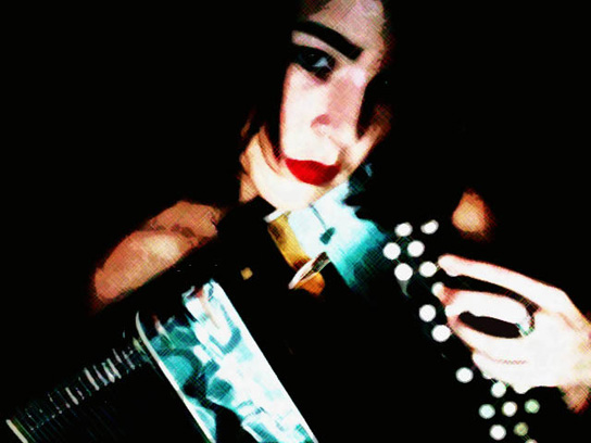 Einsam auf der Bühne sitzt eine weisse Gestalt; auf den Knien ein Akkordeon. Doch wider erwarten erklingen keine volkstümlichen Lieder, sondern eine transformierte Welt der Klänge öffnet sich. Das Akkordeon spielt eine surreale 3D-Landschaft; die Imagination der Töne der Spielerin. Durch ihr Spiel nimmt sie den Betrachter mit auf eine Reise ins Land der visuellen Klänge. Bald werden die Bilder für alle hörbar, die Projektion wird zu einer Klangumgebung. Eine Symbiose von Klang, Mensch und Bild!
