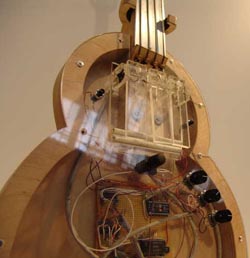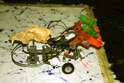 ![]() KlangcodeJan Michael Hänni, Denise Kratzer Worte als Lautpoesie, 2007 ![]() Singing GardenManuela Johanna CoviniA singing garden needs no bird. On a table the visitor perceives daily plastic utensils, pieces of electronic spare parts which are partially soldered – but also plastic flowers and a chinese electronic sound controlled bird cage. What is going to be built out of these pieces lying there is unclear because everything is evidently unfinished. But still here and there life starts rising from those parts lying on the table. LED lights are twinkling, a video is running and the sound suggests that the installation is a garden. ![]() ElectroscapeRobert Korizek, Robert Alexander (Zürich)D'effected device mutation. ![]() Strahlenroboter AituLucas Gross, FHNW HGK Institut für Design- und KunstforschungRoboter Aitu macht hochfrequente elektromagnetische Wellen von mobilen Telefonen durch audiovisuelle Effekte wahrnehmbar. ![]() Davidovitch & Konpiuta (Lausanne)Kompakt - Acid Milk Rec.. . . ![]() Track 1Simon KrebsEin Faxgerät, dass eine Zeichnung hörbar macht. Die Arbeit befasst sich mit dem Thema Kommunikation, Transport und Form von Informationen, aber auch mit der Vergänglichkeit der Technologie. Ein Faxgerät verwandelt analoge grafische Daten in akustische Signale. Arduino: Tobias Hoffmann, Martin Fröhlich; Programmierung: Stephan Athanas ![]() Kaspar König (NL)Kaspar KönigKaspar König spielt auf seinen manipulierten Spielzeugen, welche aus allen Ecken der Welt stammen. ![]() Meka-Taka - Der mechanische Zeichen-RoboterSimon Krebs, Stefan Baltensberger, Medienkunst, FNHWStudierende des Institutes Medienkunst zeigen fünf Zeichenroboter, die unter Leitung von Andres Wanner entstanden sind. Die Roboter zeichnen fragile, lebendige und expressive Bilder, die manchmal technoid, häufig poetisch und immer wieder überraschend wirken. ![]() Unsichtbar - sichtbarEva Merckling, Dania Vifian, Sarah Villiger, Medienkunst, FNHWRoboter, der durch Magnetismus Spuren hinterlässt, die geheimnisvoll und wie eine organische Zeichnung wirken. ![]() Pünktchen AntonNiko Eriksson, David Siepert, Medienkunst, FNHWAuf der Reise durch seine Welt, kennzeichnet der Roboter den Weg und wichtige Wegpunkte. ![]() Killing DogHugo Ochoa, Alejandro Roquero, Medienkunst, FNHWDer wie ein toter Hund aussehende Roboter malt mit zwei Wasserpistolen und den Rädern im dripping Stil des abstrakten Expressionismus. ![]() MobilographAlain Fiechter, Philip Colombo, Medienkunst, FNHWZeichnungen werden von diesem Roboter mit einem Pinsel ausgeführt und basieren auf Kreisbewegungen. ![]() MetunarAdriano Capizzi (Thurgau)Reise durch schräge Klänge in der dritten Dimension. Modulare Synths, Gitarren-Mods und Mehrkanalton. ![]() FLooperFlorian Kaufmann (Solothurn)Ein cmos-basierender Multikanallooper ohne Mikroprozessor. 8 bit. 0-150 kHz Sampling Rate. Variable Geschwindigkeit der Spuren. Jede Spur misch- und mute-bar. Spannungsgesteuerte Filter. Ein Live-Performertool - einfach und intuitiv. ![]() Autonomous OrchestraNikolas Neecke (Basel)Umgebaute und kurzgeschlossene Keyboards, welche zufällige Streams von Tönen generieren. ![]() VideoBassMichael Egger, Anyma (Fribourg)The VideoBass is an unique hardware/software-combination for controlling live-visuals. Shaped like a electric bass-guitar, it relies on the guitar-paradigm where, basically speaking, the left hand chooses between a wide variety of possible notes, and the right hand triggers them. ![]() Operateur Fotokopieur vs. Syndrome wpw (Lausanne)Midinette Rec./NamskeioOpérateur Fotokopieur and his melancholic destroy maniac acid pop meets Syndrome wpw and his introvert urban destructive synth hard punk on stage for a non-laptop electronic show, including guns, birds and a starship. www.myspace.com/operateurfotokopieur ![]() HandsOn Doepfer Modularmit Styro2000 vom defekt ZürichA-100 ist ein modular aufgebautes analoges System im Stil der Modulsysteme aus den 70er Jahren. Die Renaissance der analogen Synthesizer in den letzten Jahren hat gezeigt, daß die analoge Klangerzeugung neben den digitalen Syntheseformen durchaus Ihre Berechtigung hat und klangliche Ergebnisse liefert, die auf keine andere Weise zu erhalten sind. |